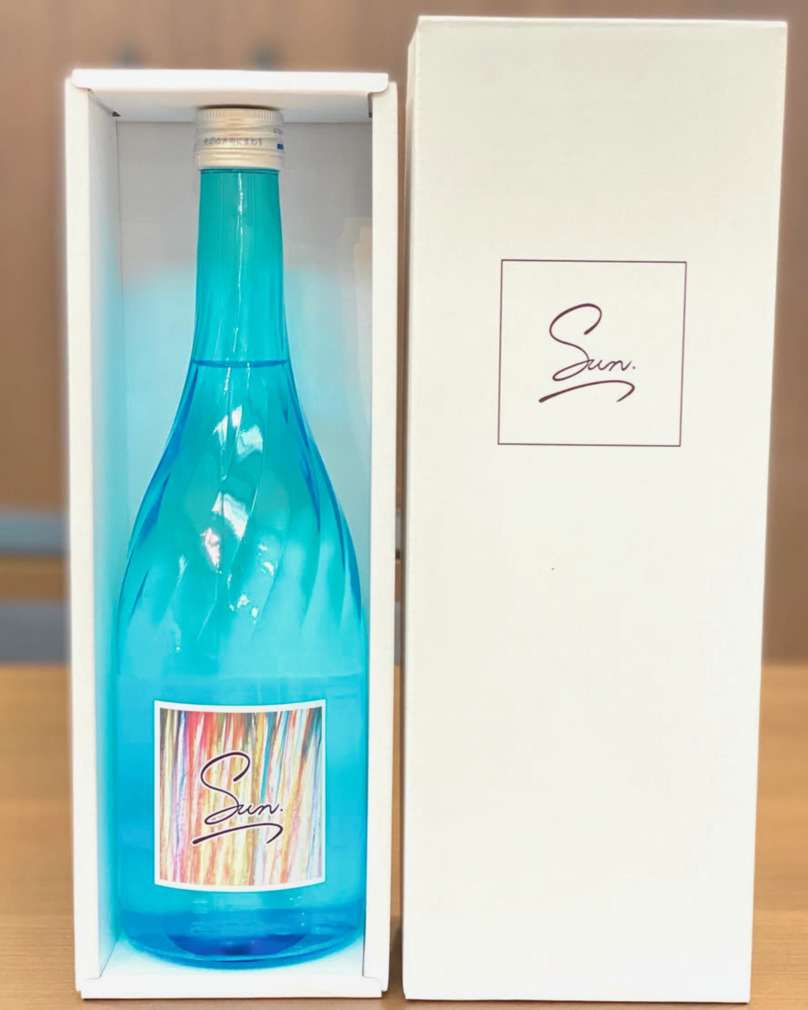 青く透き通ったモダンなデザインのボトルには、アートを施した『Sun』のラベル。