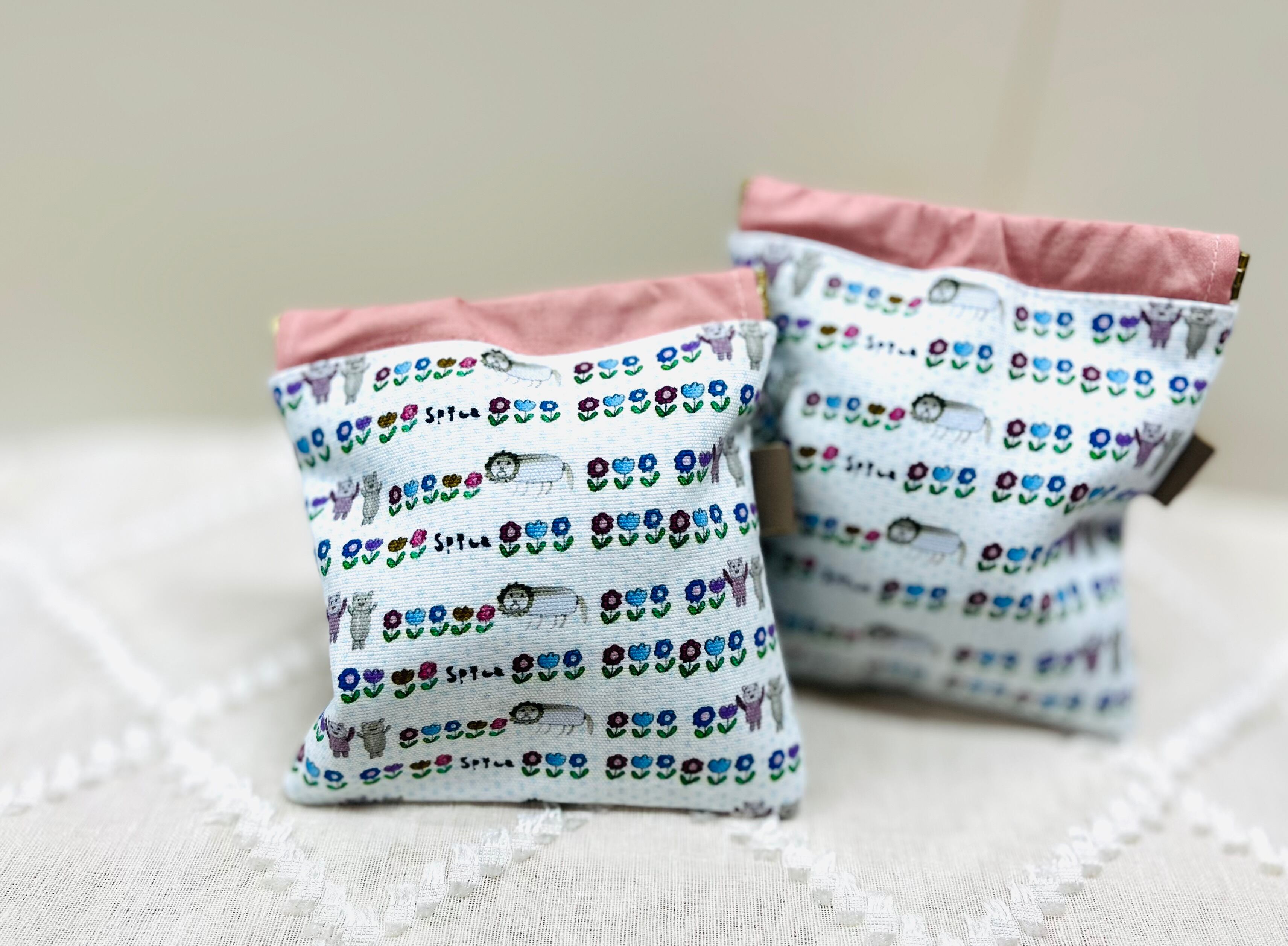 オリジナル生地を使用したこのポーチは、柔らかな印象としっかりとした作りが魅力です。ばね口仕様で開けやすく、中身の取り出しも楽々! その愛らしいデザインは、どんなシーンでも心を和ませる存在です❤︎