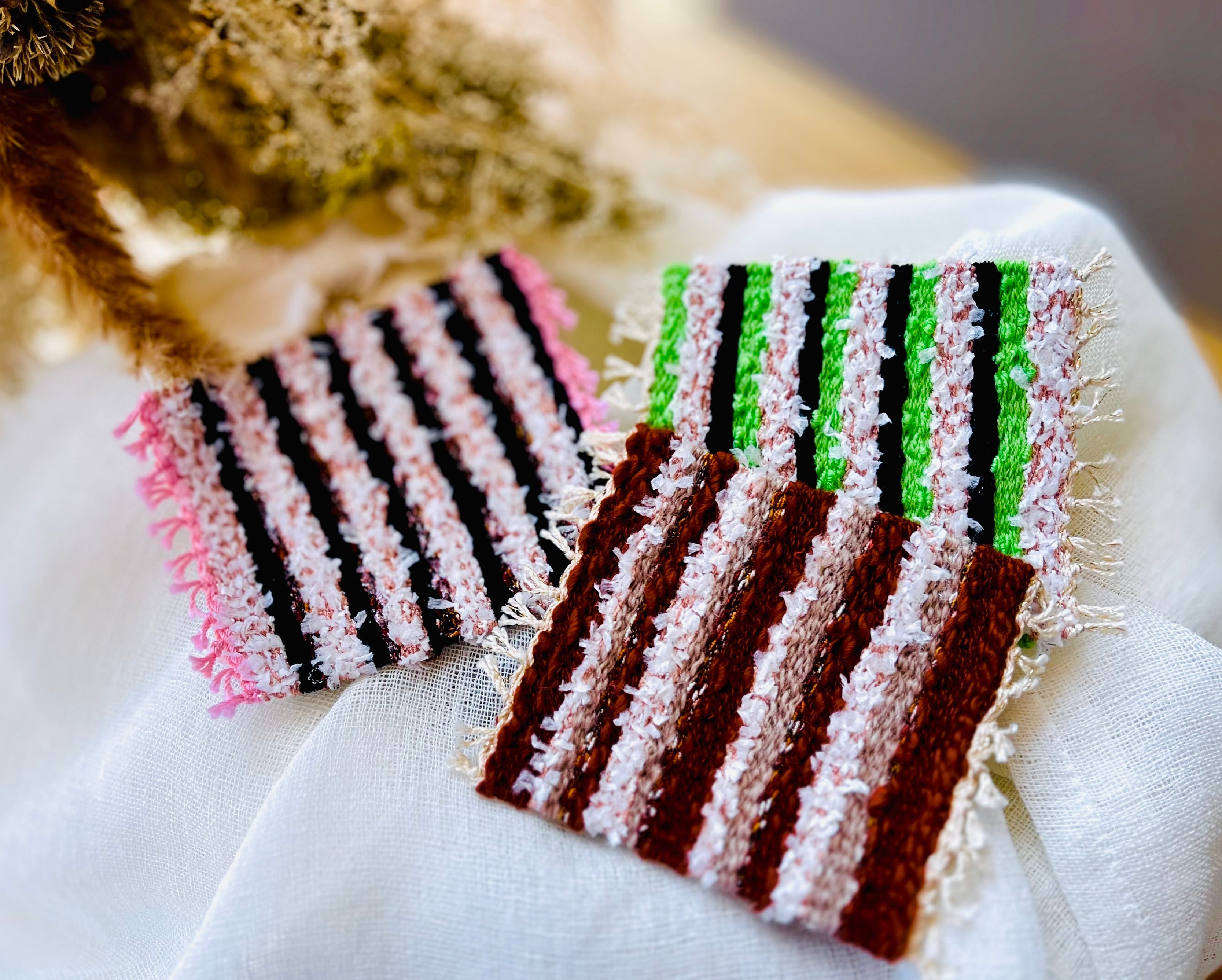 手織りの温もりが感じられる、魅力的なコースター3個セットです!