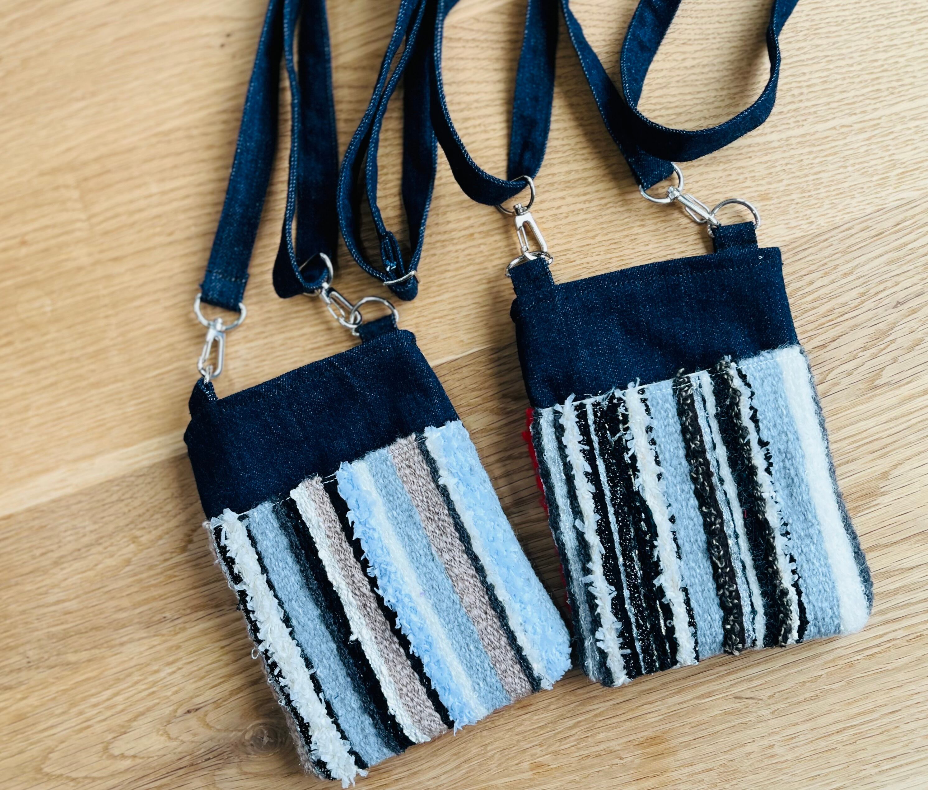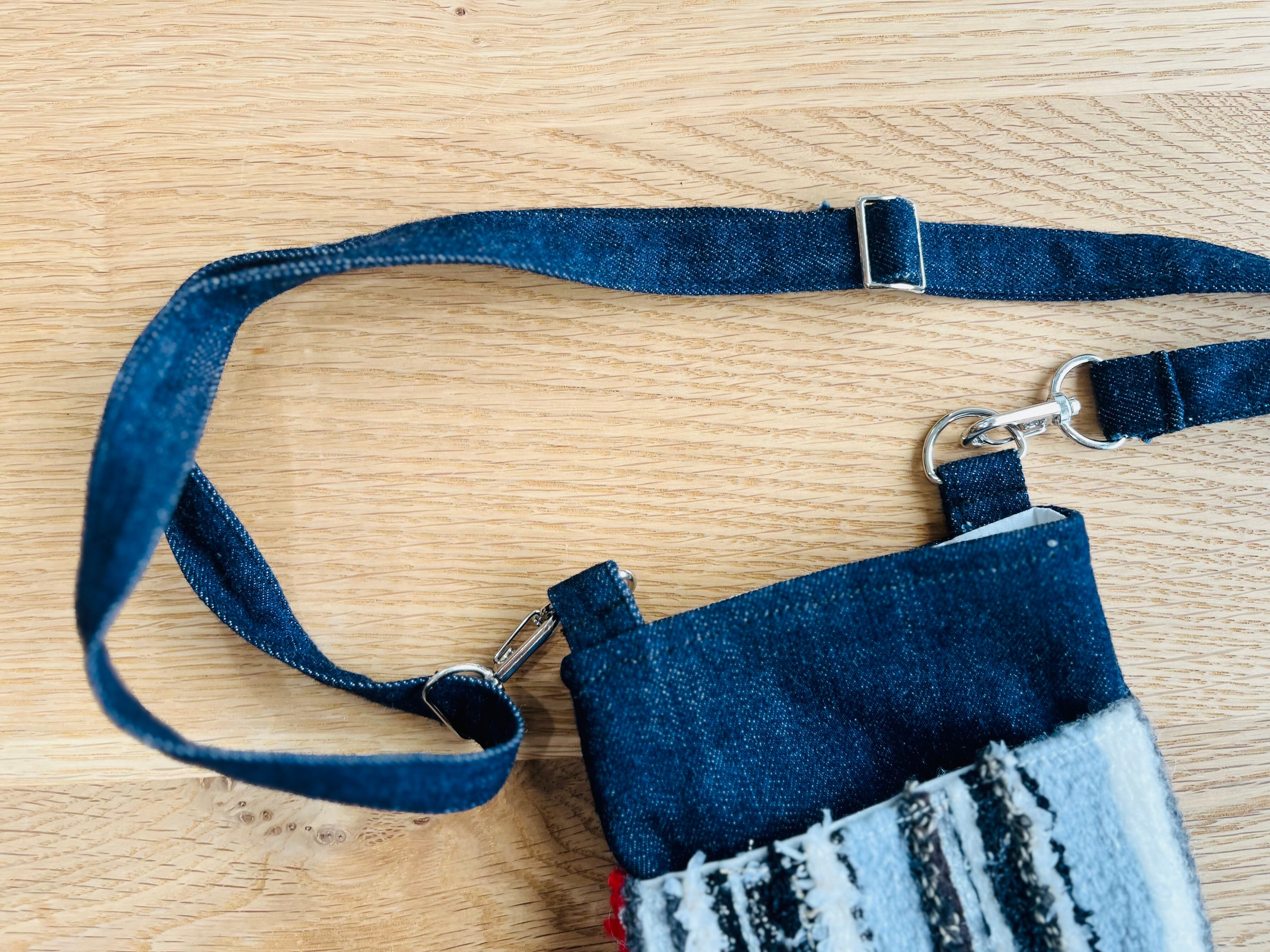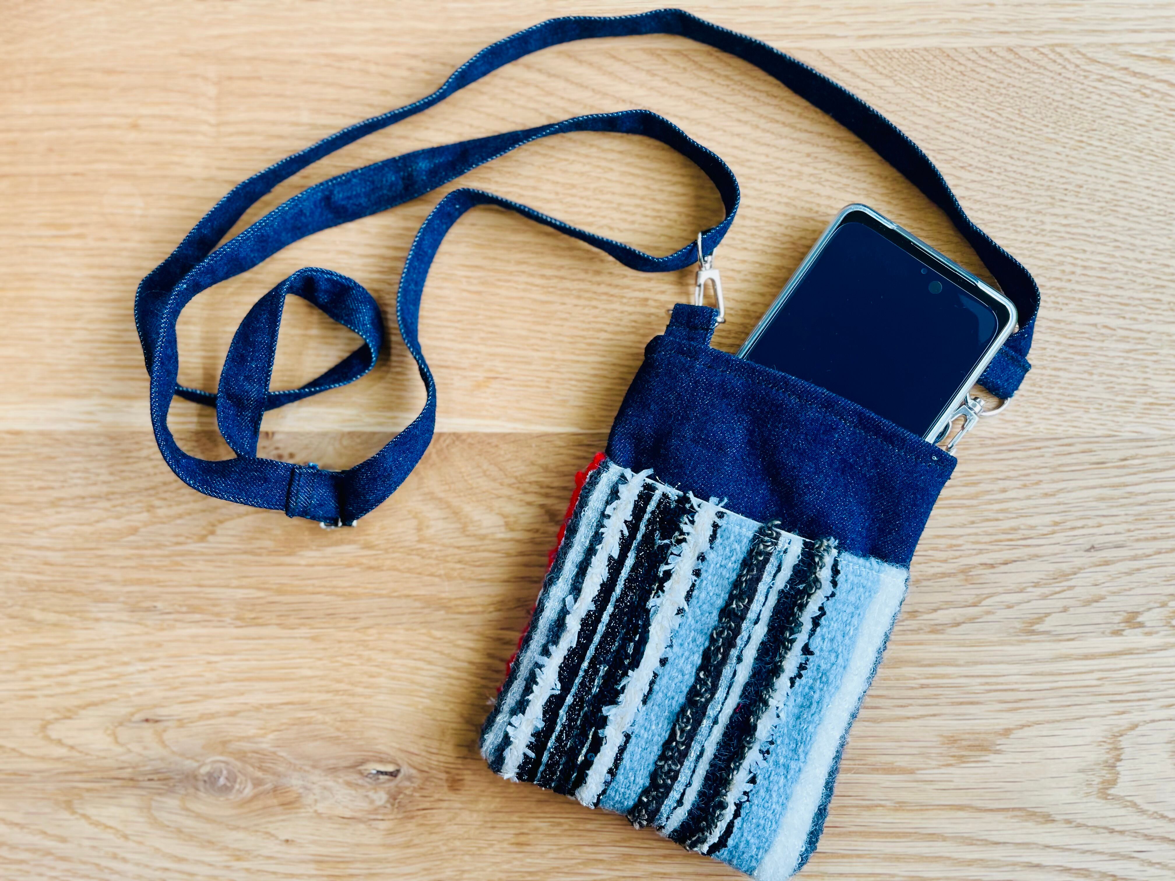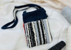 手織りならではのぬくもりと、デニムのしっかりとした丈夫さを合わせた、世界にひとつだけのスマホショルダーです♪