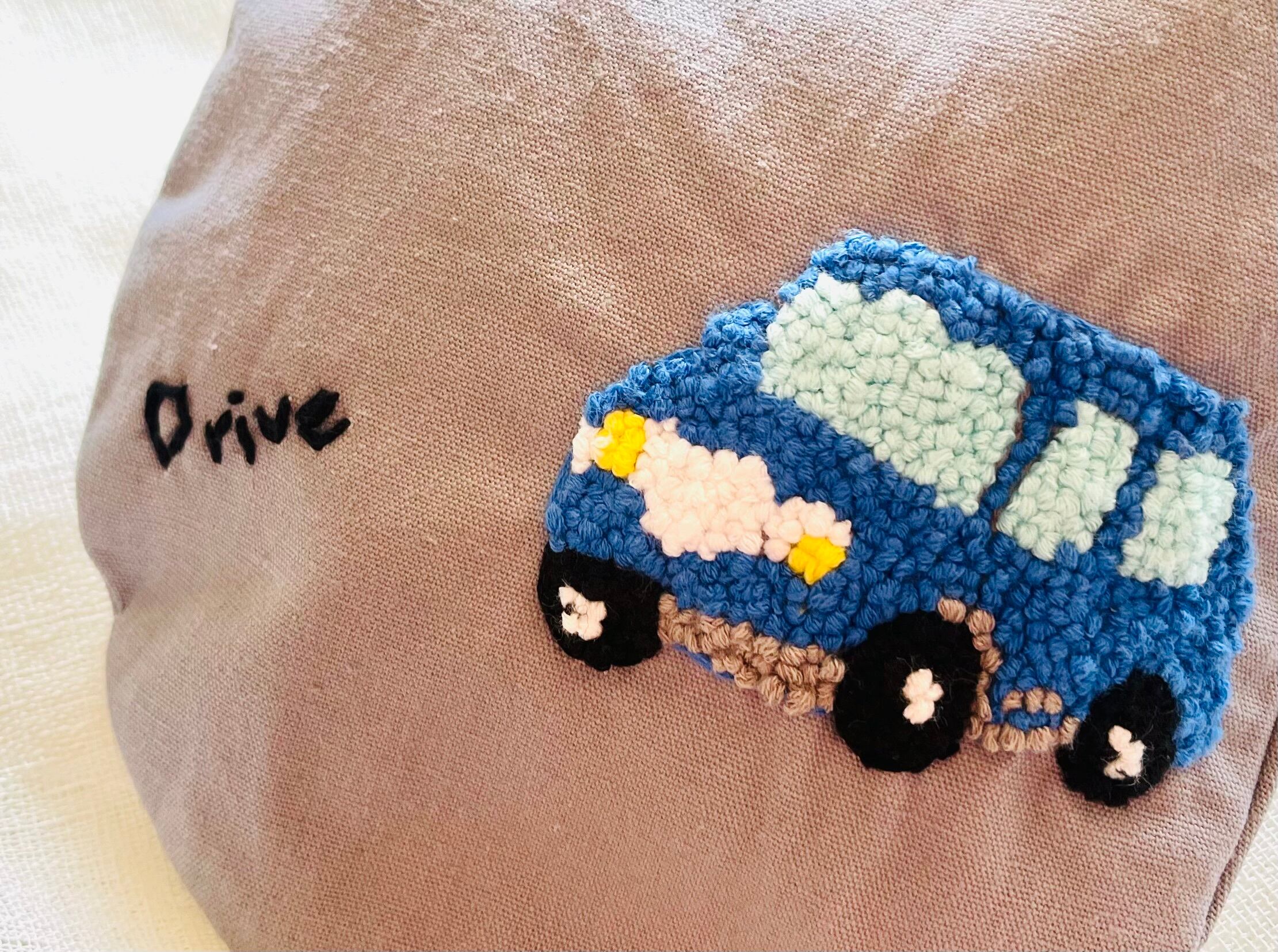 コロンと愛らしい車の刺繍フォルムが可愛い巾着ができました❤︎
