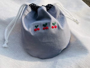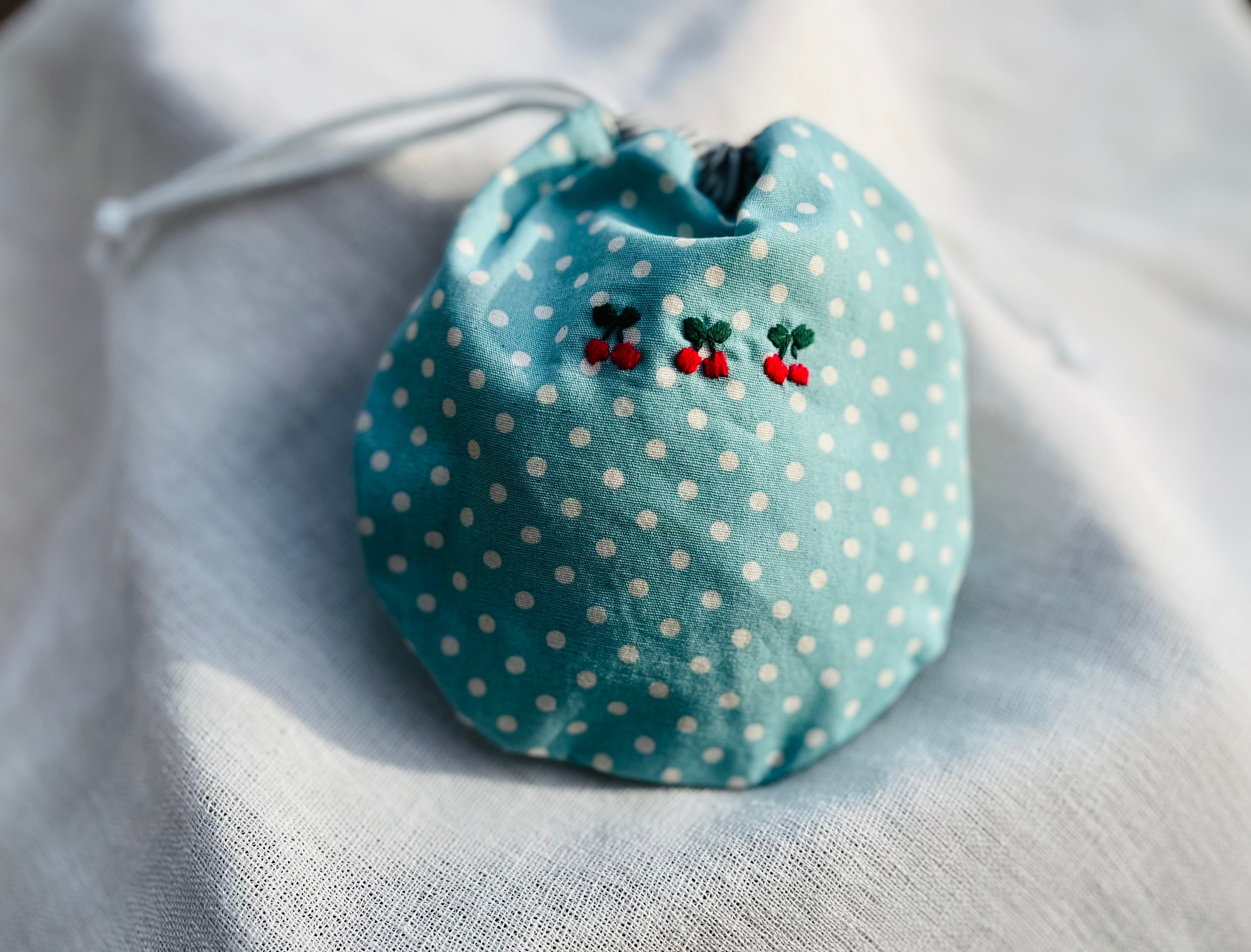 可愛らしいさくらんぼの刺繍が施されたこの巾着は、見るだけで心が和むアイテムです♪ それぞれの刺繍に込められた個性や表現が、まさに世界に一つだけの特別な存在に仕上げています!